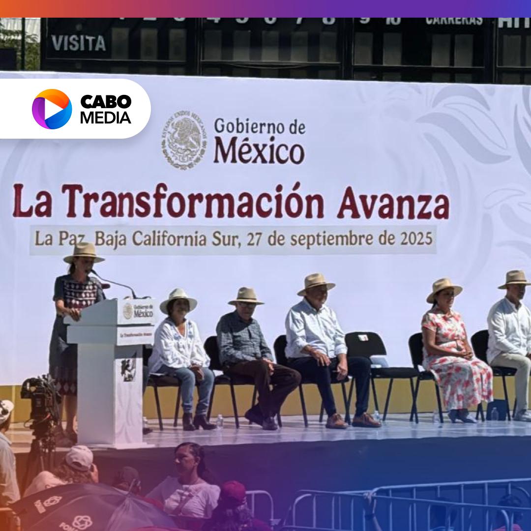 En su visita a La Paz, la Presidenta de México destacó la entrega de pensiones, becas y apoyos productivos que benefician a miles de familias